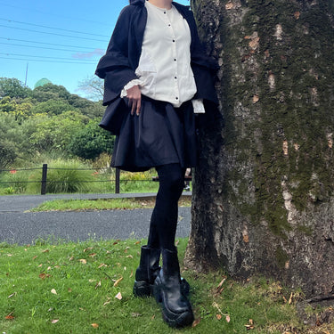 程よいゆとりと女性らしいラインで、タイツ合わせやブーツスタイルにも好相性。