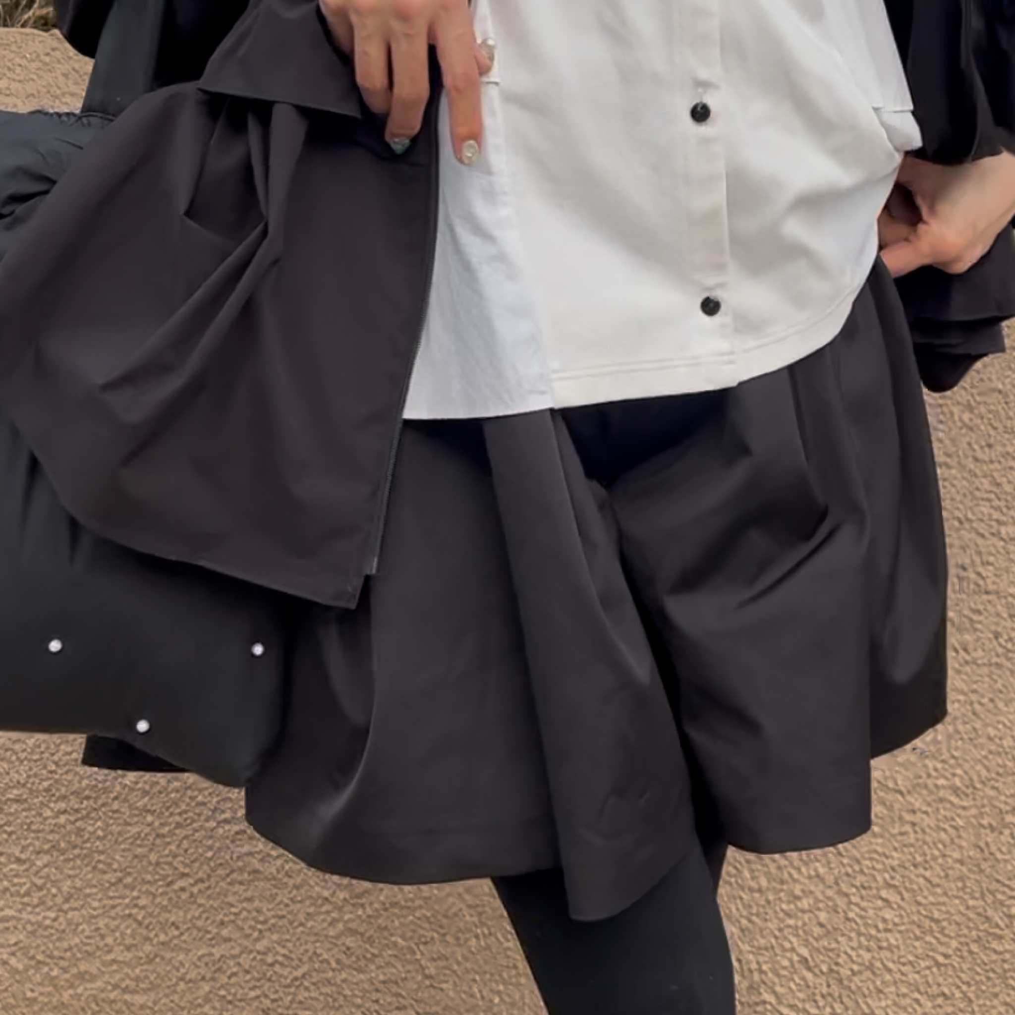 “カボチャパンツ”をイメージしながらも、広がりすぎないシルエットでスカートのような優雅なボリューム感を演出します。