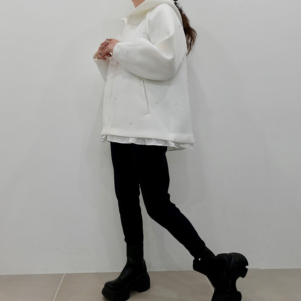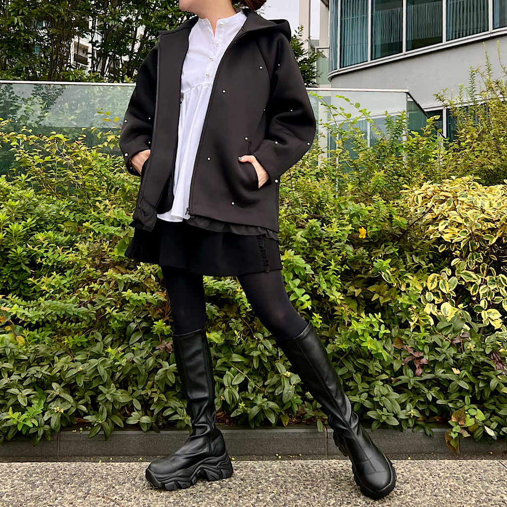 SONOらしく、ボンディング素材で柔らかく、キレイ目に着こなせる