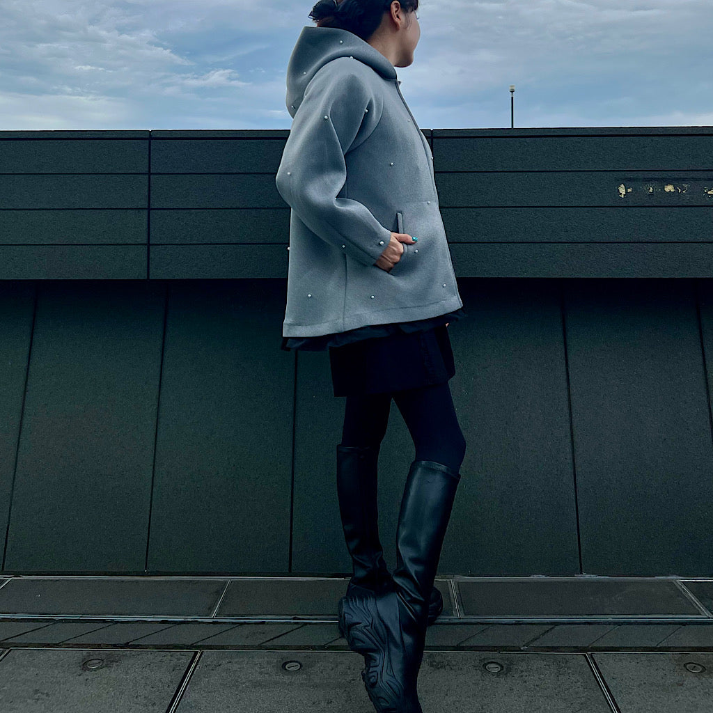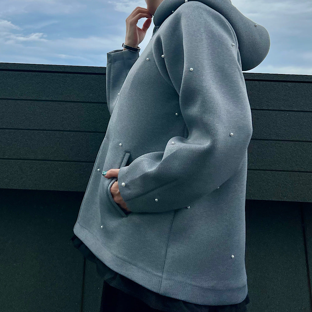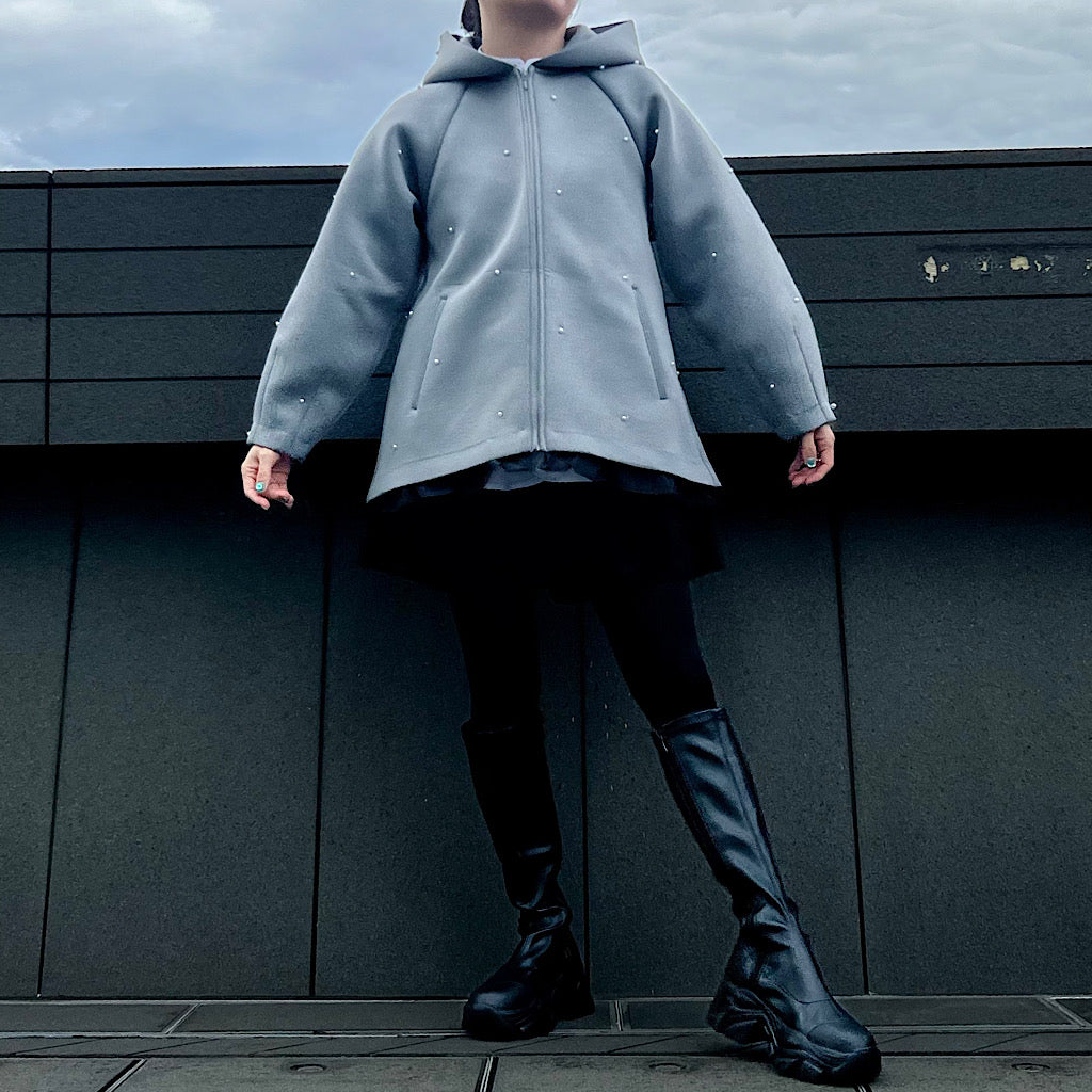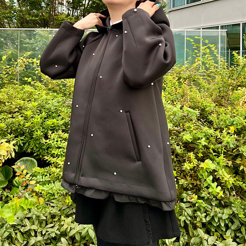 軽アウターとしても、真冬になったらゆったりコートの下にも着れるとても着れる時期が長い、万能フーディです
