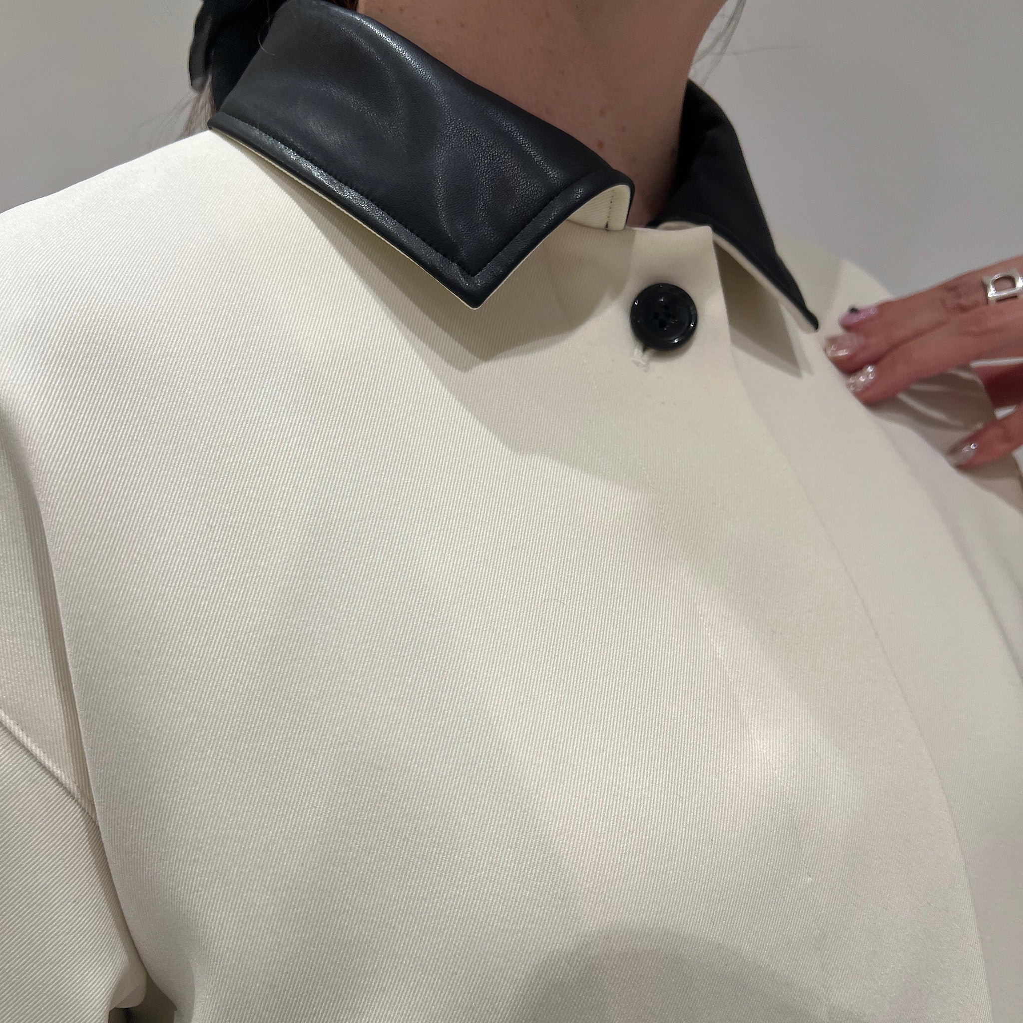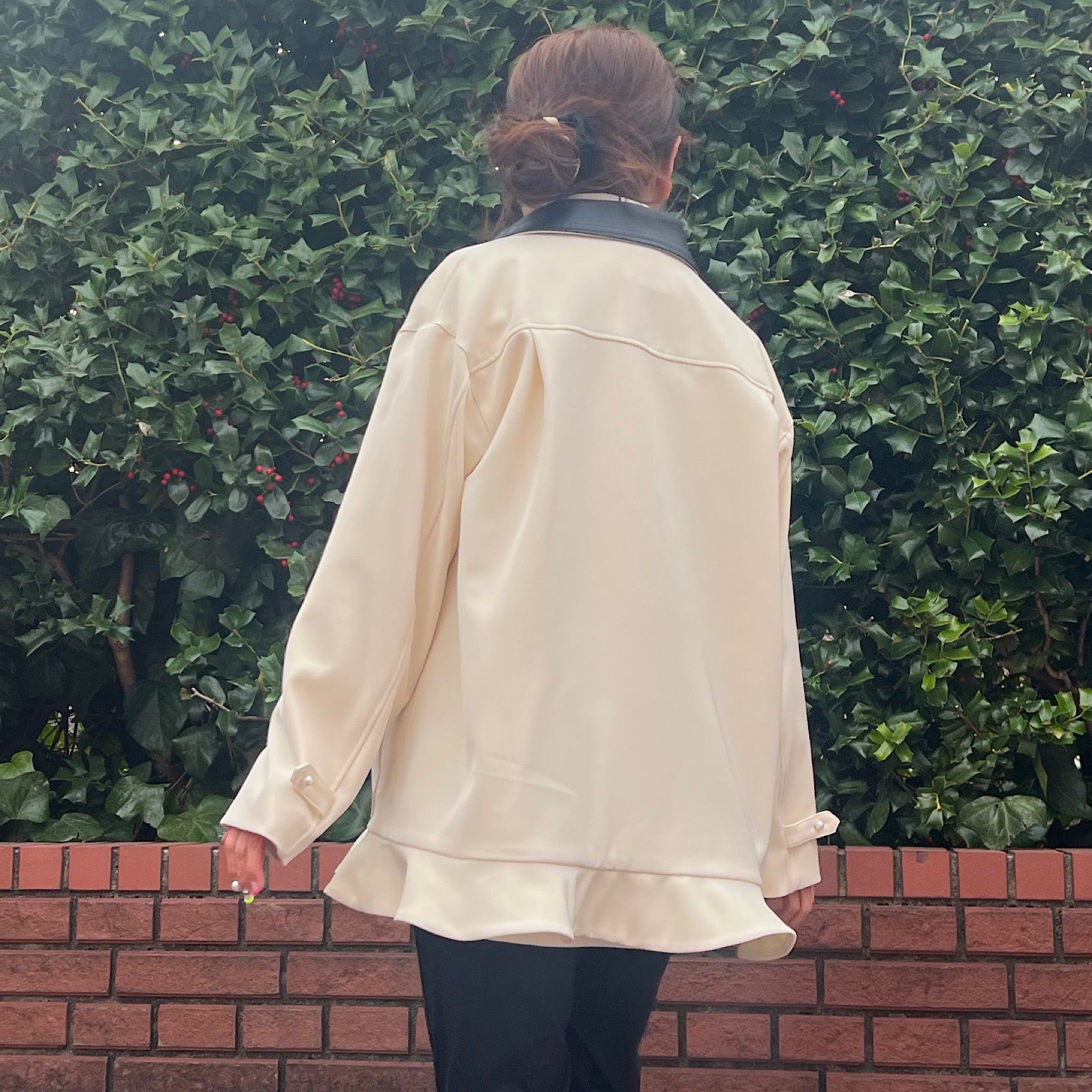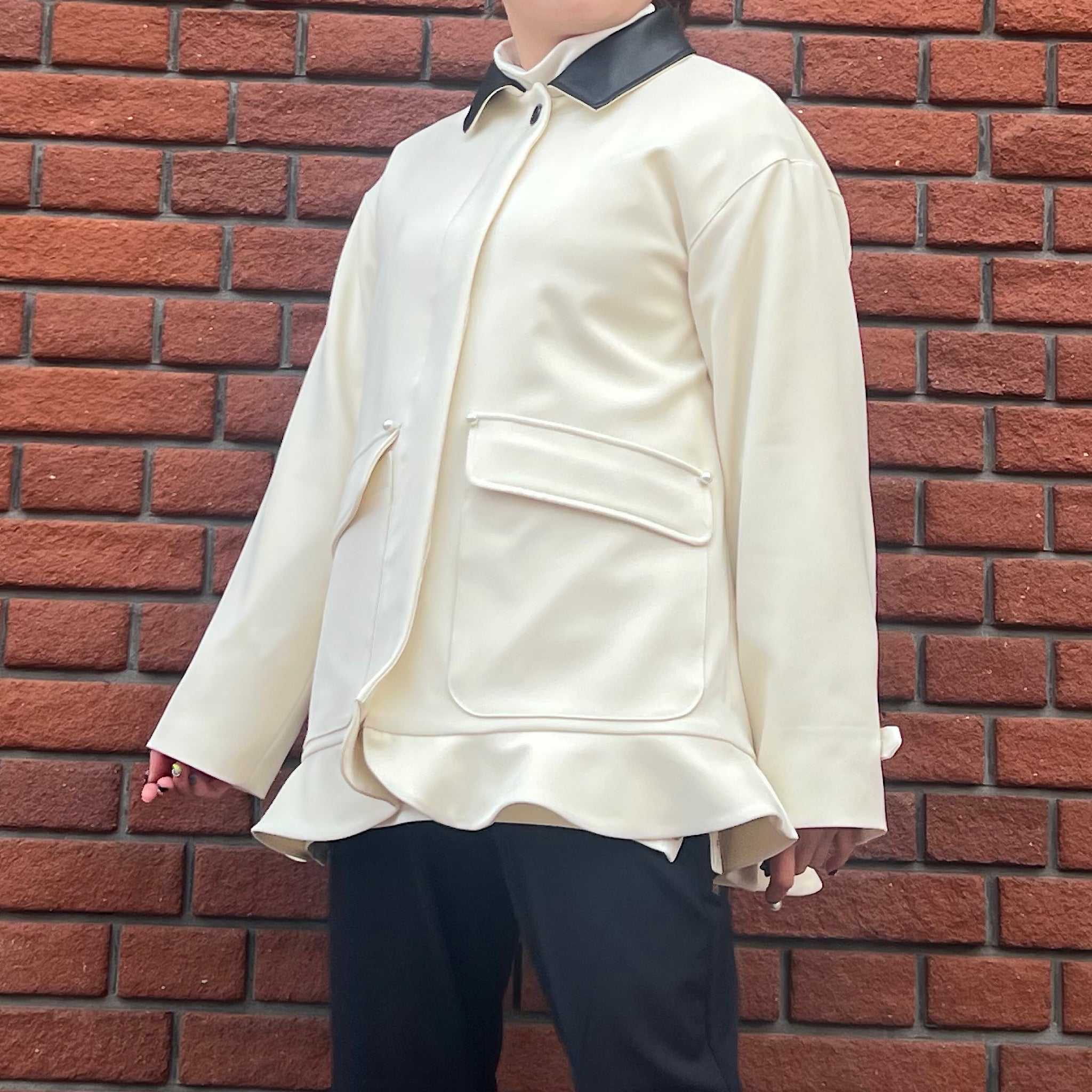 さらにエコレザーの衿が程よいアクセントとなり、